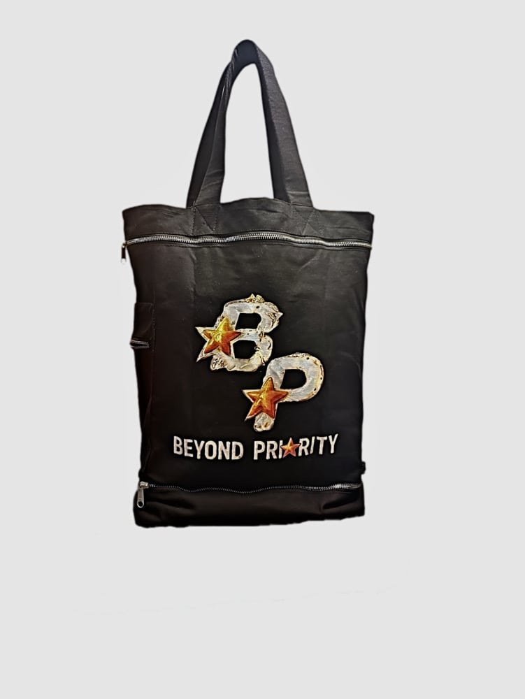 Carry your essentials with style. The Beyond Priority Canvas Tote Bag combines street-inspired graphics with everyday functionality. Made from sturdy black canvas, it features a bold “BEYONDFRIED" star artwork on the front, framed by contrasting zippers that add both edge and practicality.